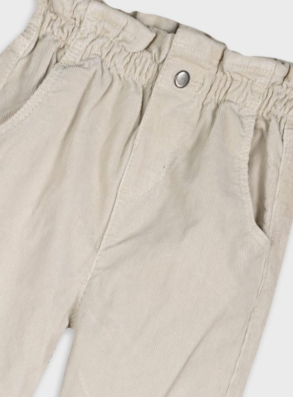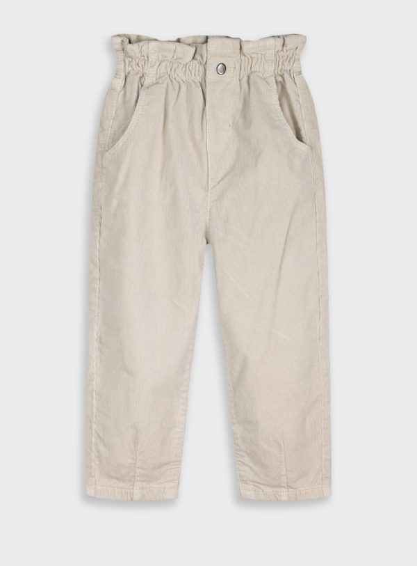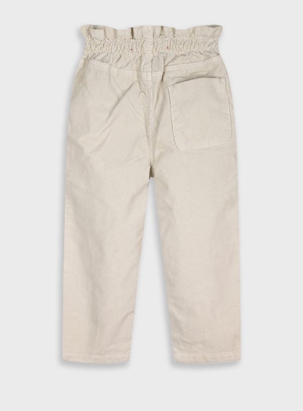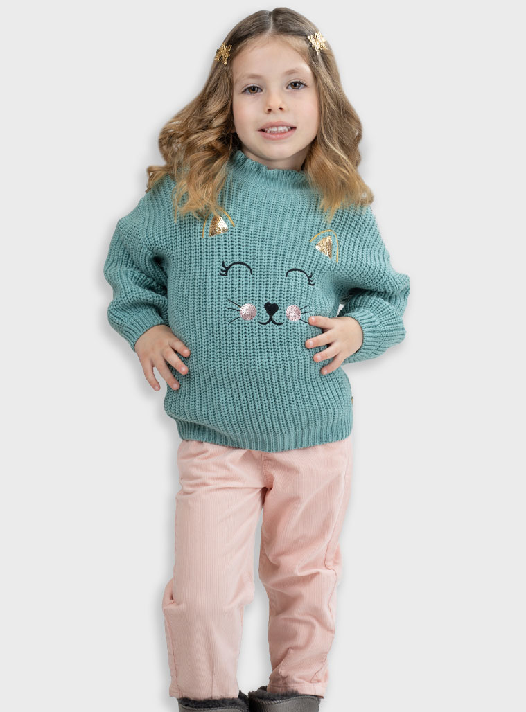 Calças folgadas para menina. Apertam com elástico na cintura, fazendo oefeito de folho. Quentinhas. Tem bolsos interiores laterais e pequenas pregas no tornozelo para o efeito de ajustamento. Fazem conjunto com as camisolas bordado com gato.