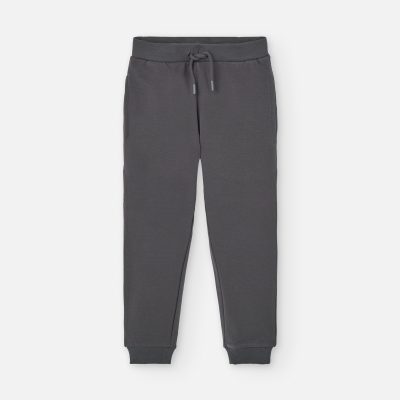 Calças de ganga ajustadas para menino em cor antracite. Ajustam na cintura com cordão. Tem bainha no tornozelo