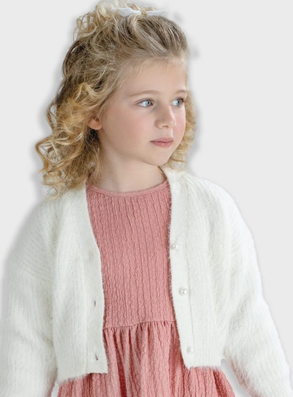 Casaco de malha curto para menina. Muito fofos e quentinhos ideias para vestir sobre t-shirt ou vestidos. Disponível em cru e em rosa.