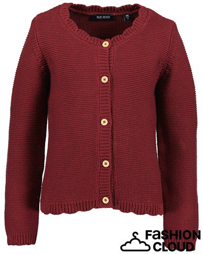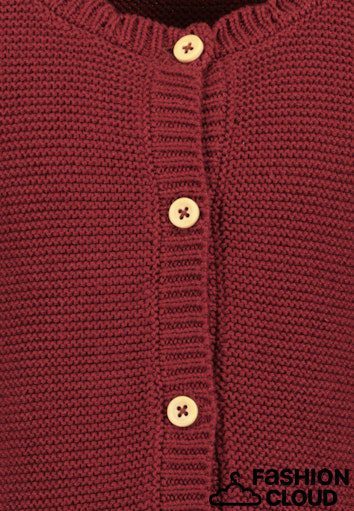 Casaco de malha para menina. Tem ondas na gola, punhos e cintura. Aperta com botões. Tem gola redonda e corte regular. Pode ser conjugado com t-shirt com coração de lantejoulas da mesma coleção