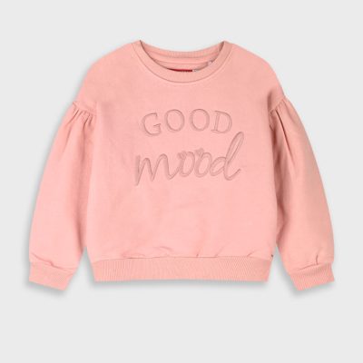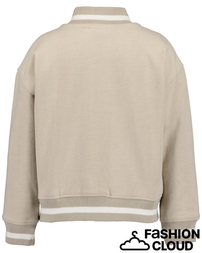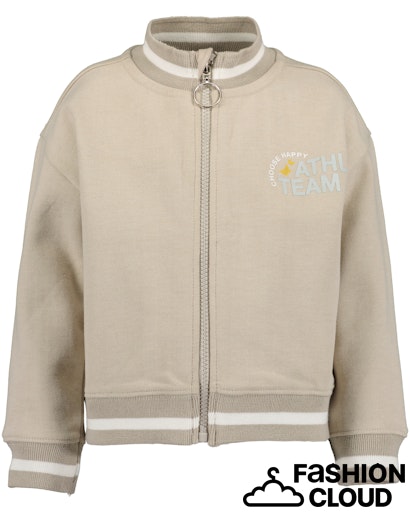 Sweatshirt para menina. Tem gola, punhos e cintura canelados para dar mais conforto e manter quentes as mais pequeninas. Fecho com Zip. Tem print no peito, ATHL team – choose happy. Conjugação das cores beje e cru. Corte regular