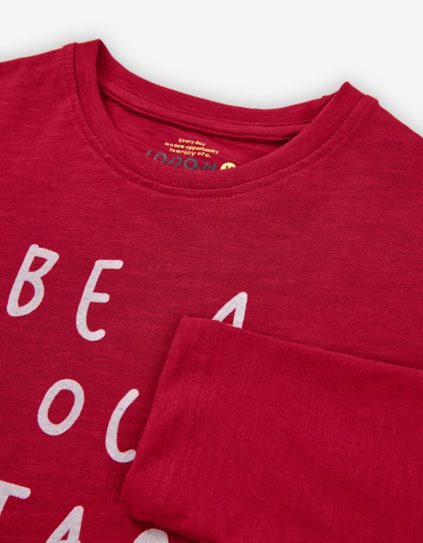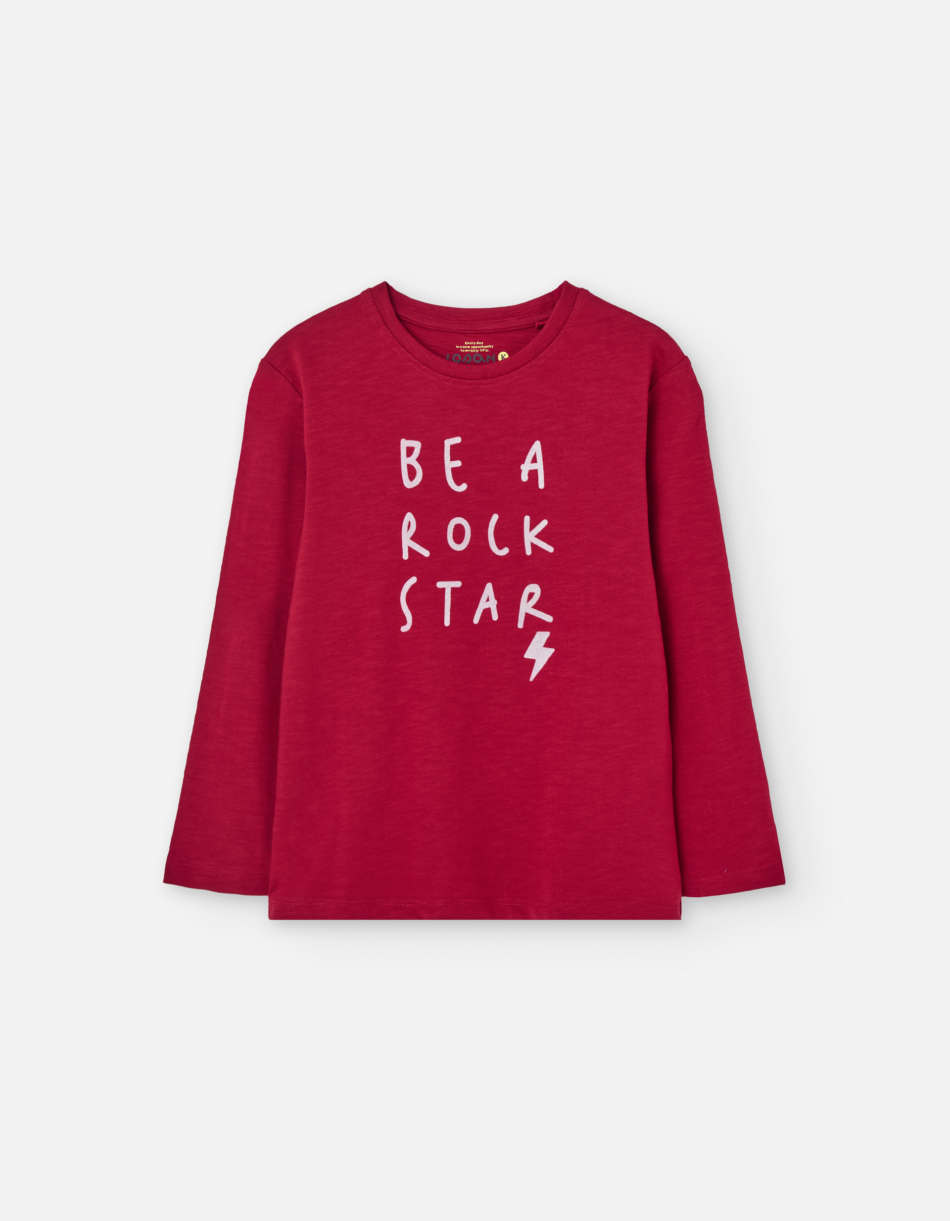 T-shirt de manga comprida amarela para menino. Tem desenho de bola de basket e texto na frente.